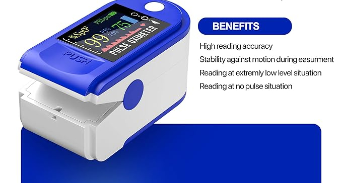 • Clear and Easy to Read: This blood and oxygen monitor have LED display, you can read in high light clearly.Our finger oxygen sensor will check and display in real time SpO2, PR, Pulse bar graph which are very easy to understand