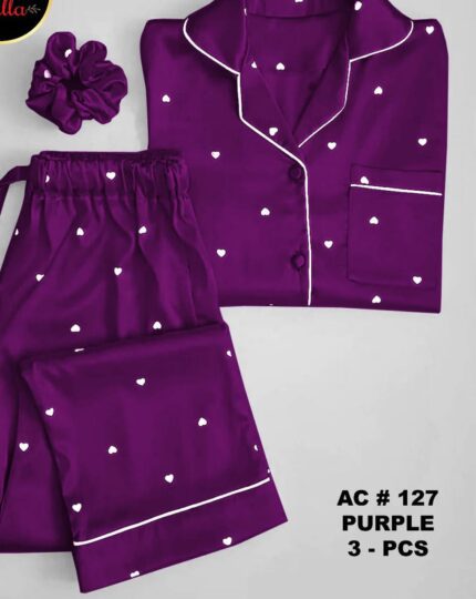 Silk night suit for women With Ponytail