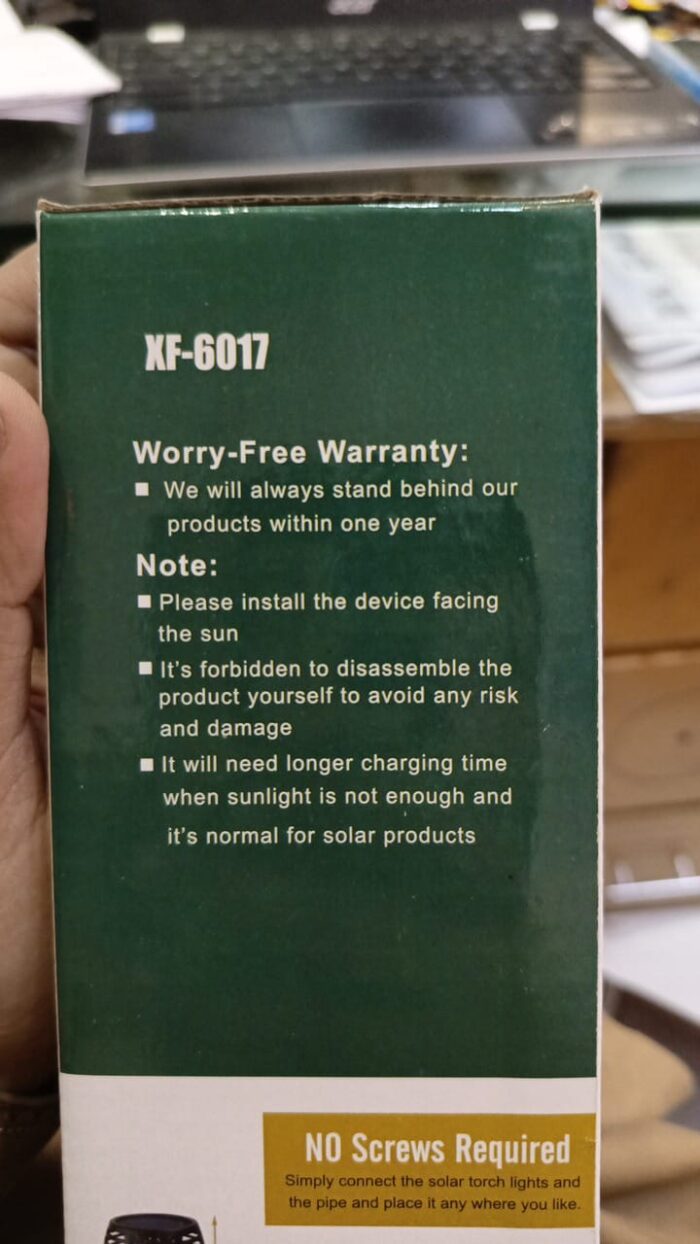 - Wireless device. During daytime, the solar panel absorbs the sunlight and converts the solar energy into electricity. The solar torch light turns on automatically at dusk